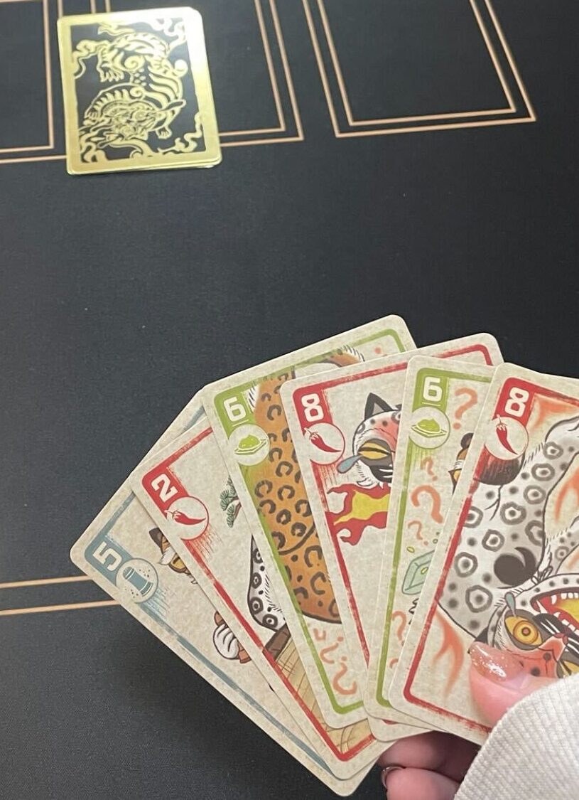 ジャンルとしてはダウト系。数字だけではなく、「スパイス(唐辛子・ワサビなど)」や、特殊カードによる心理戦が加わっていて、ただのダウトより読み合いが深いのが特徴!